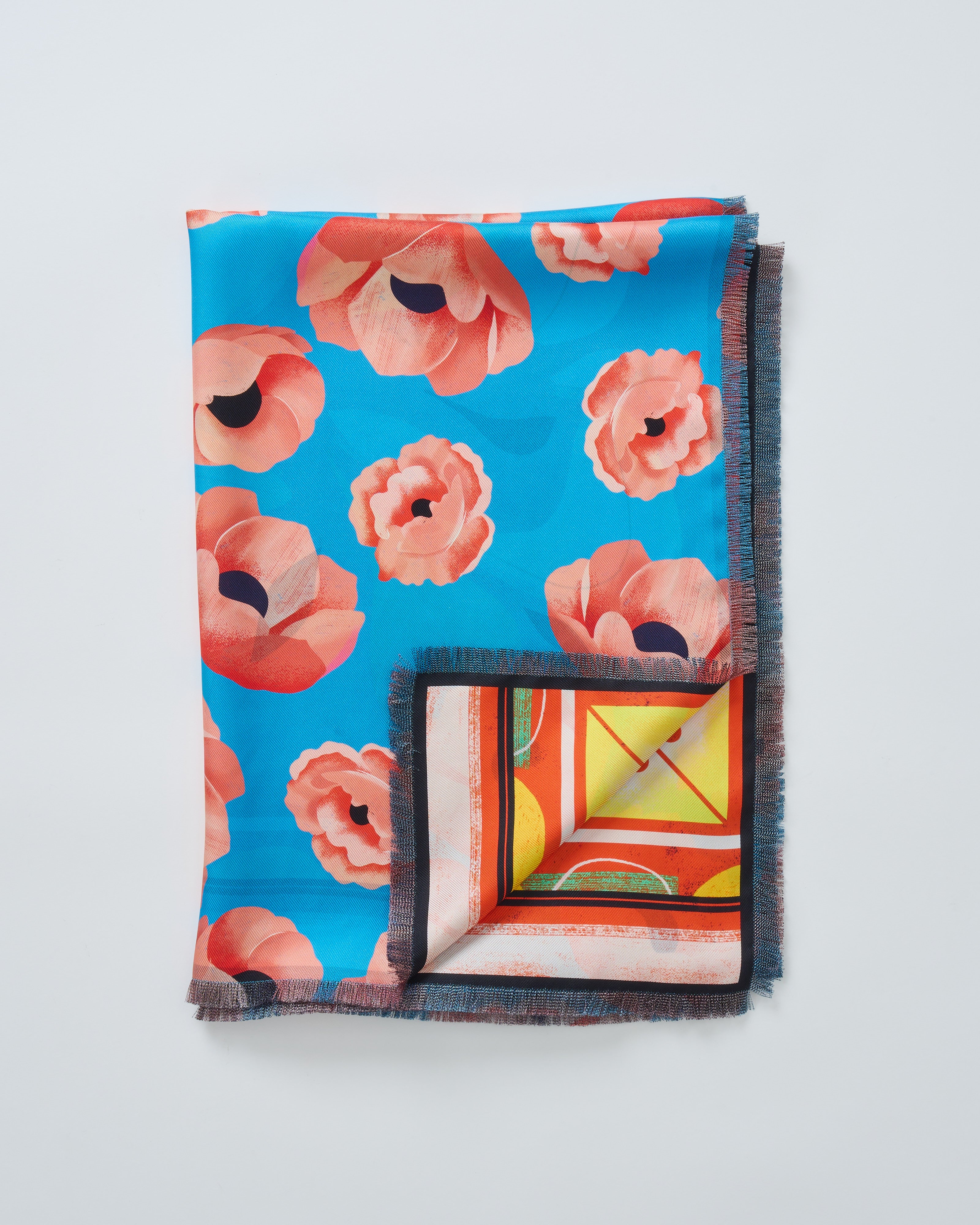 - blue and pink floral printed reversible scarf