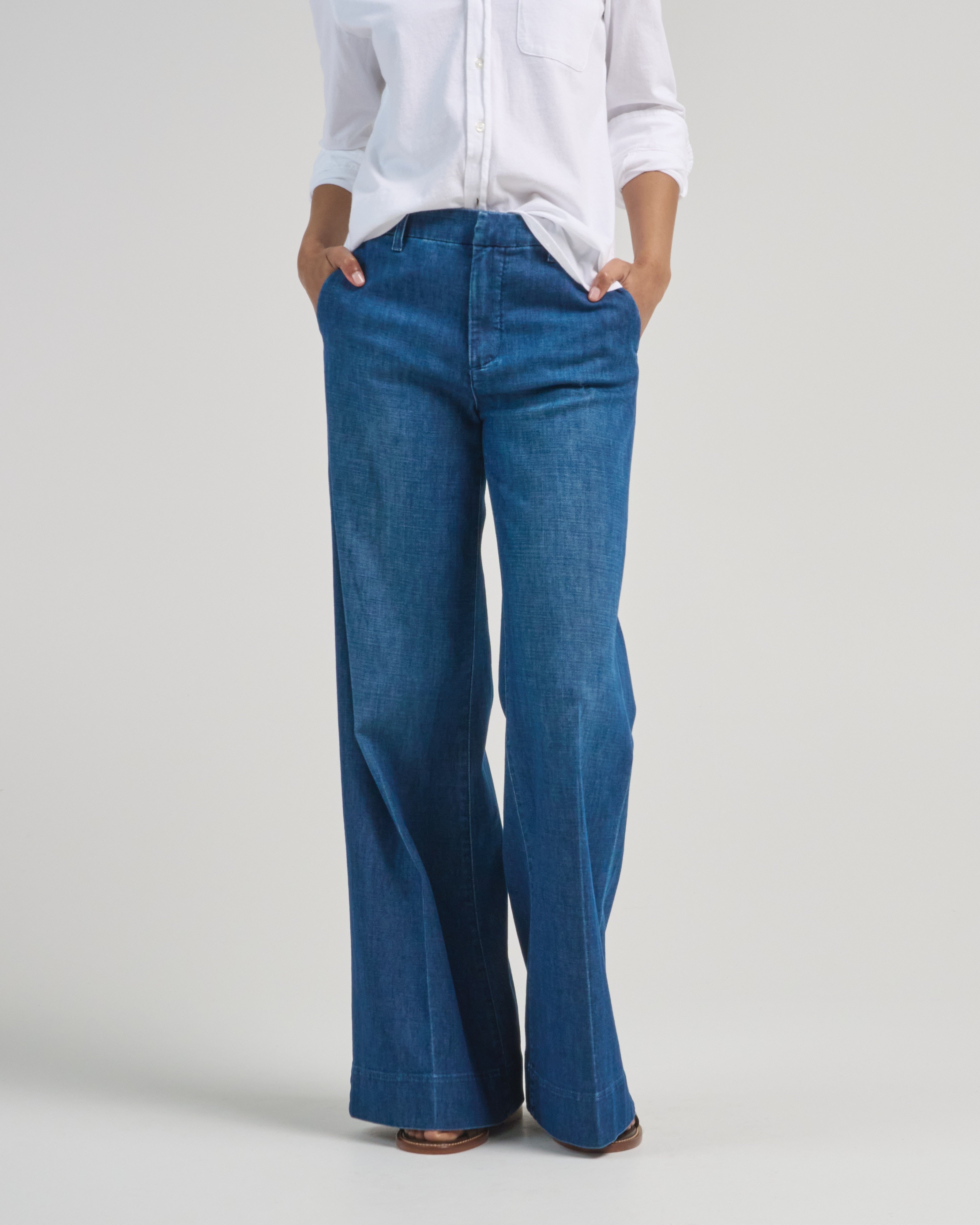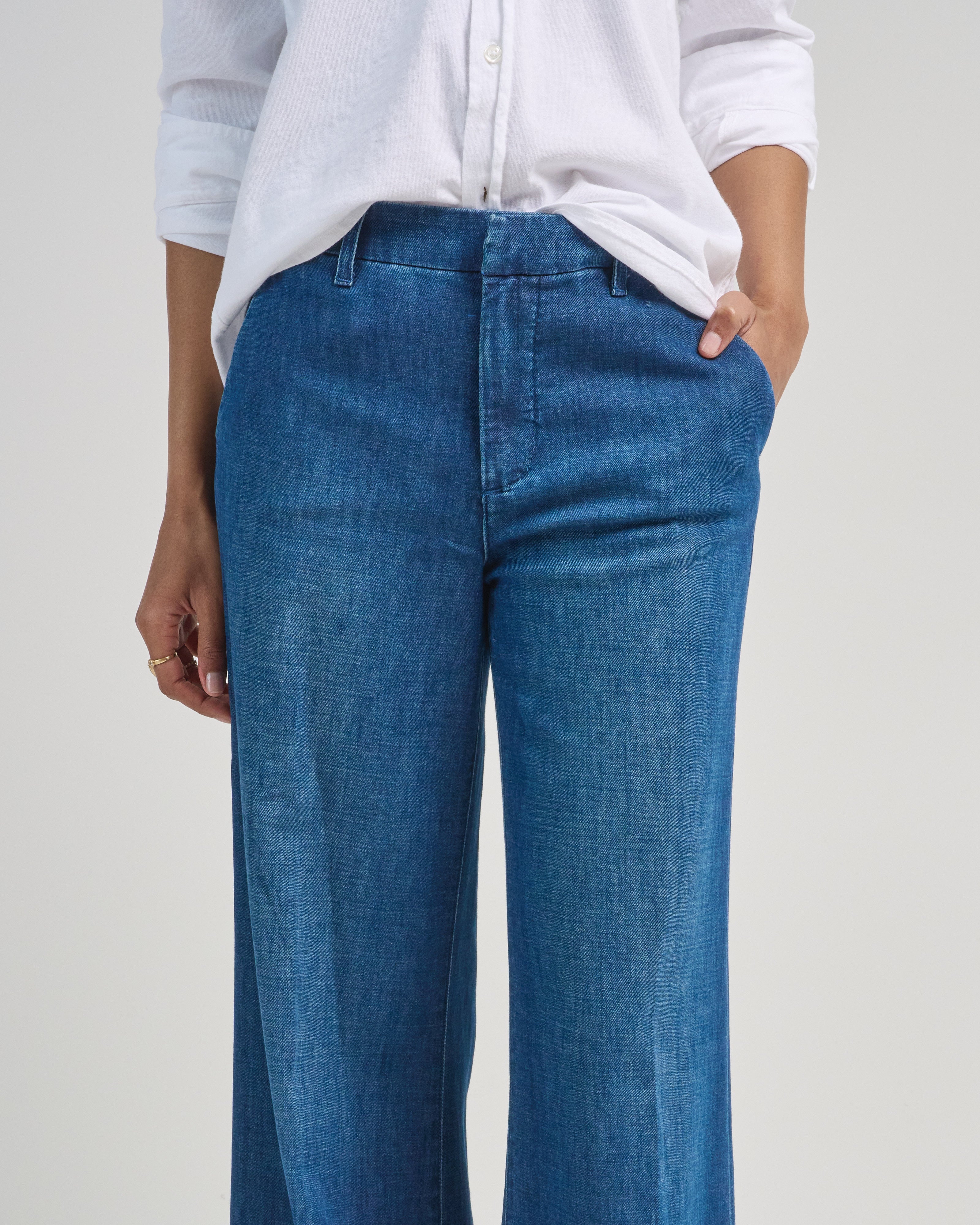 - mid wash denim chinos