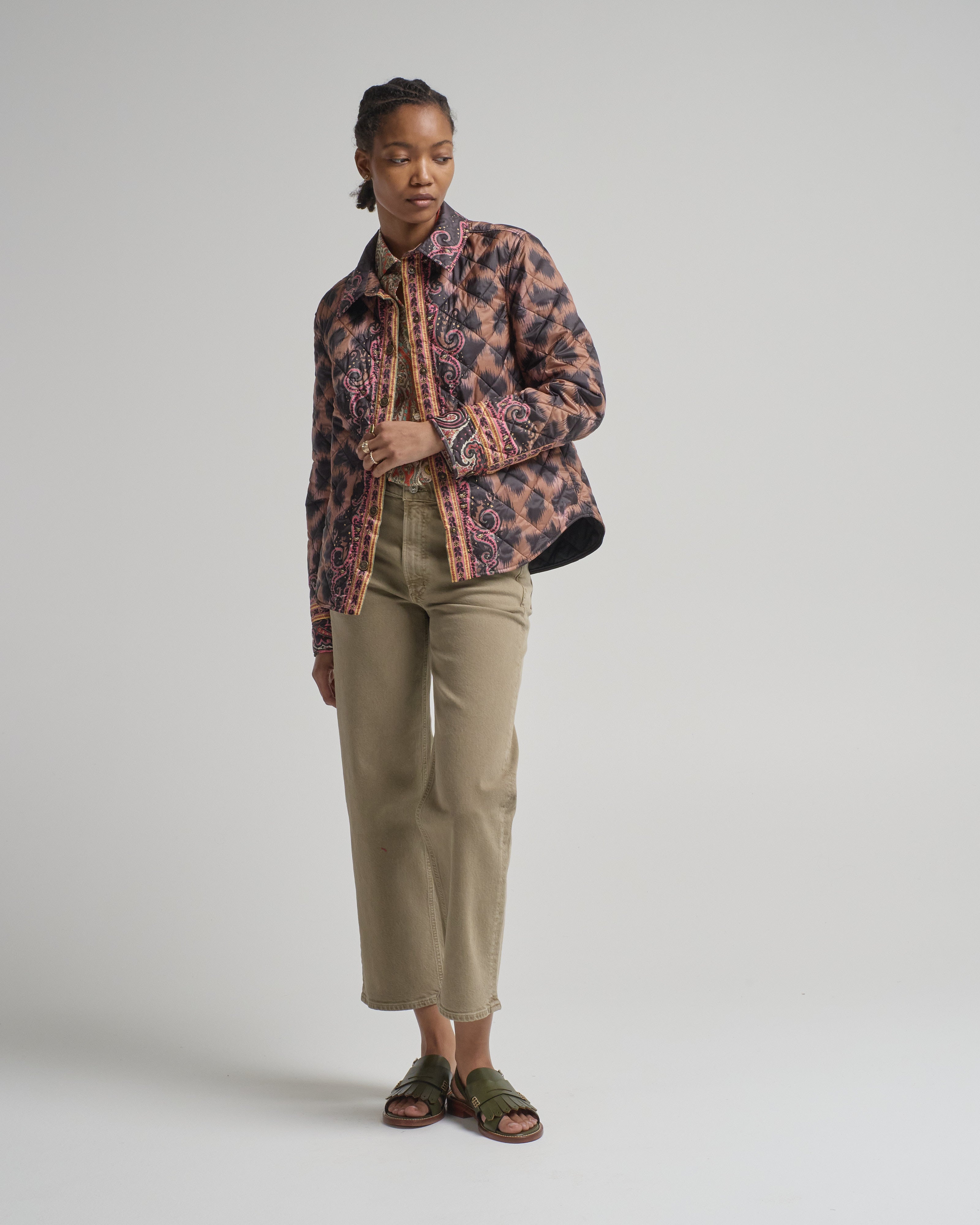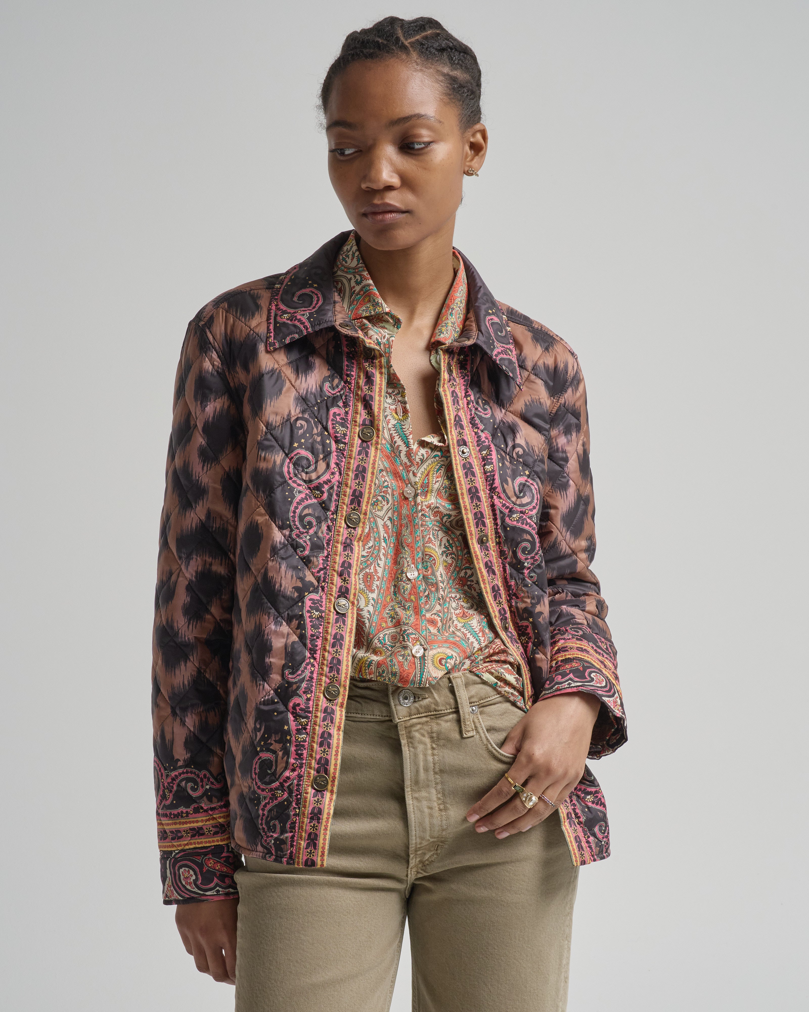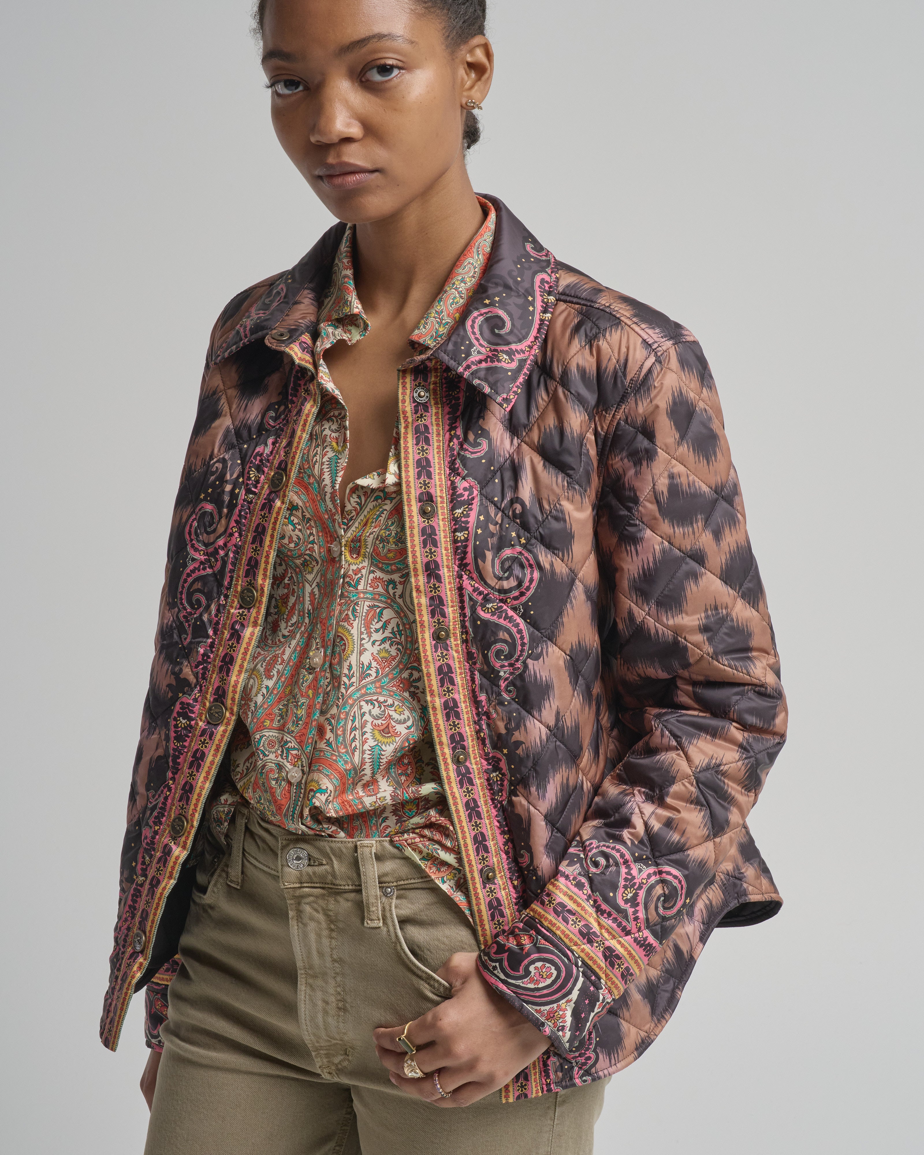- multicolored leopard and paisley printed long sleeve jacket