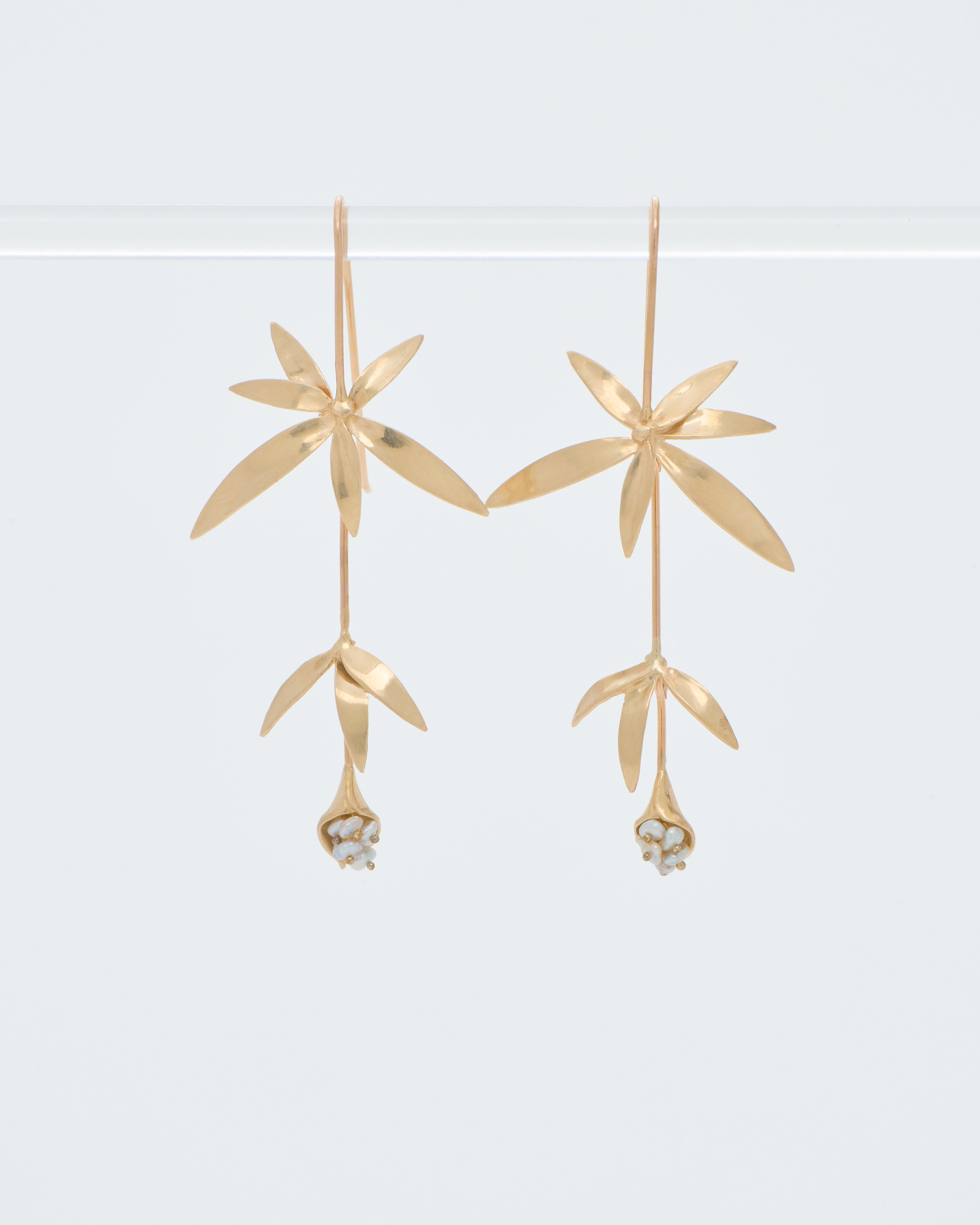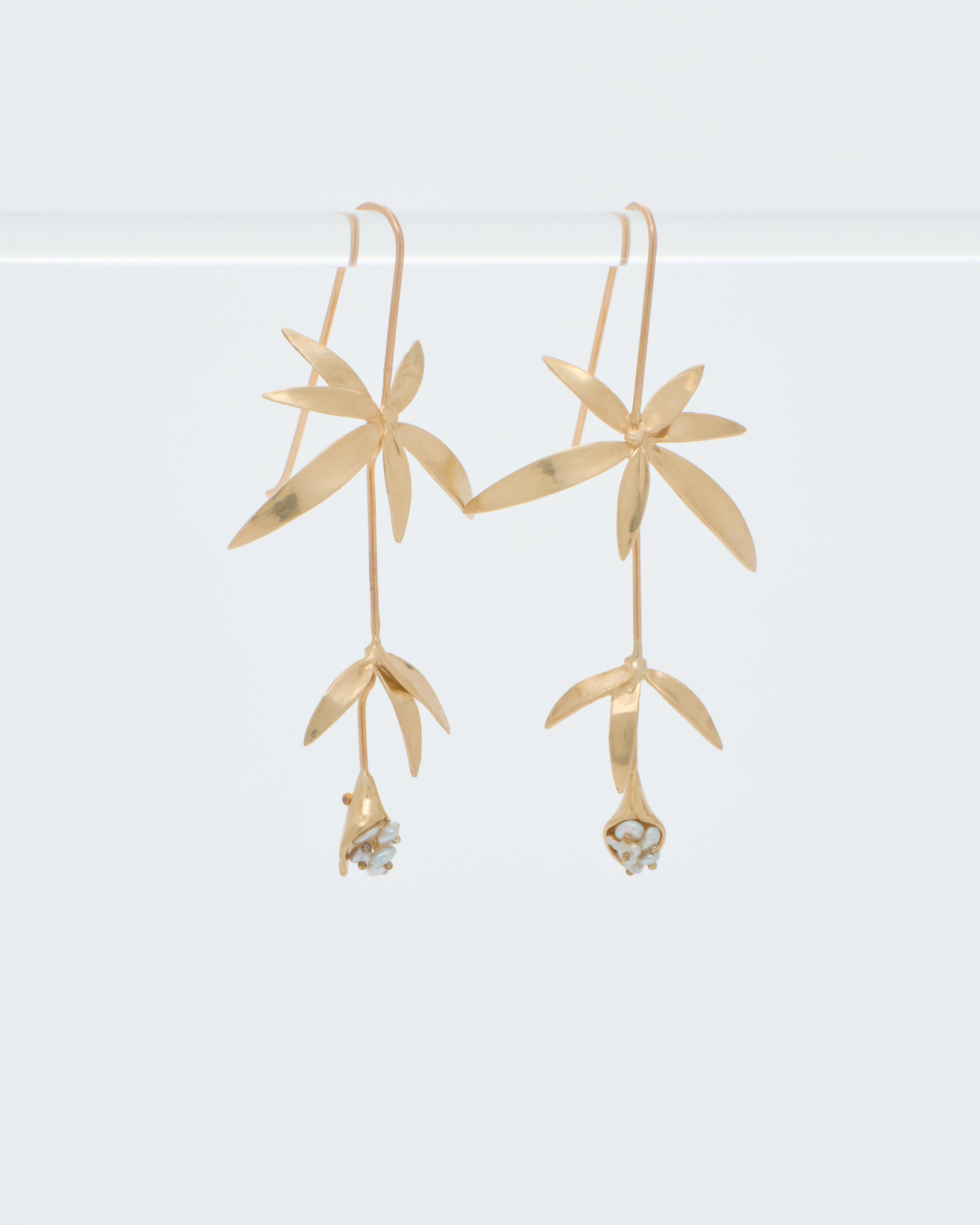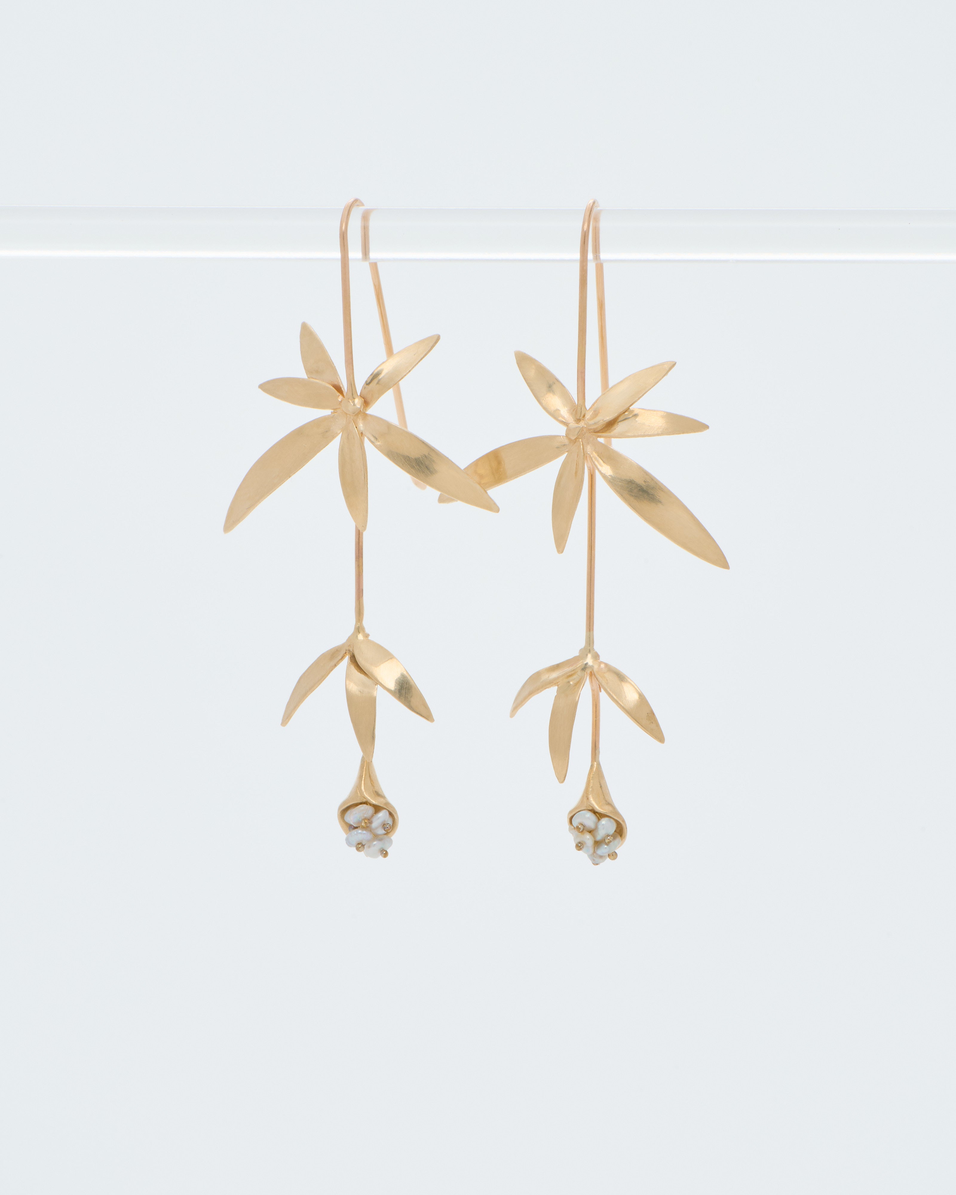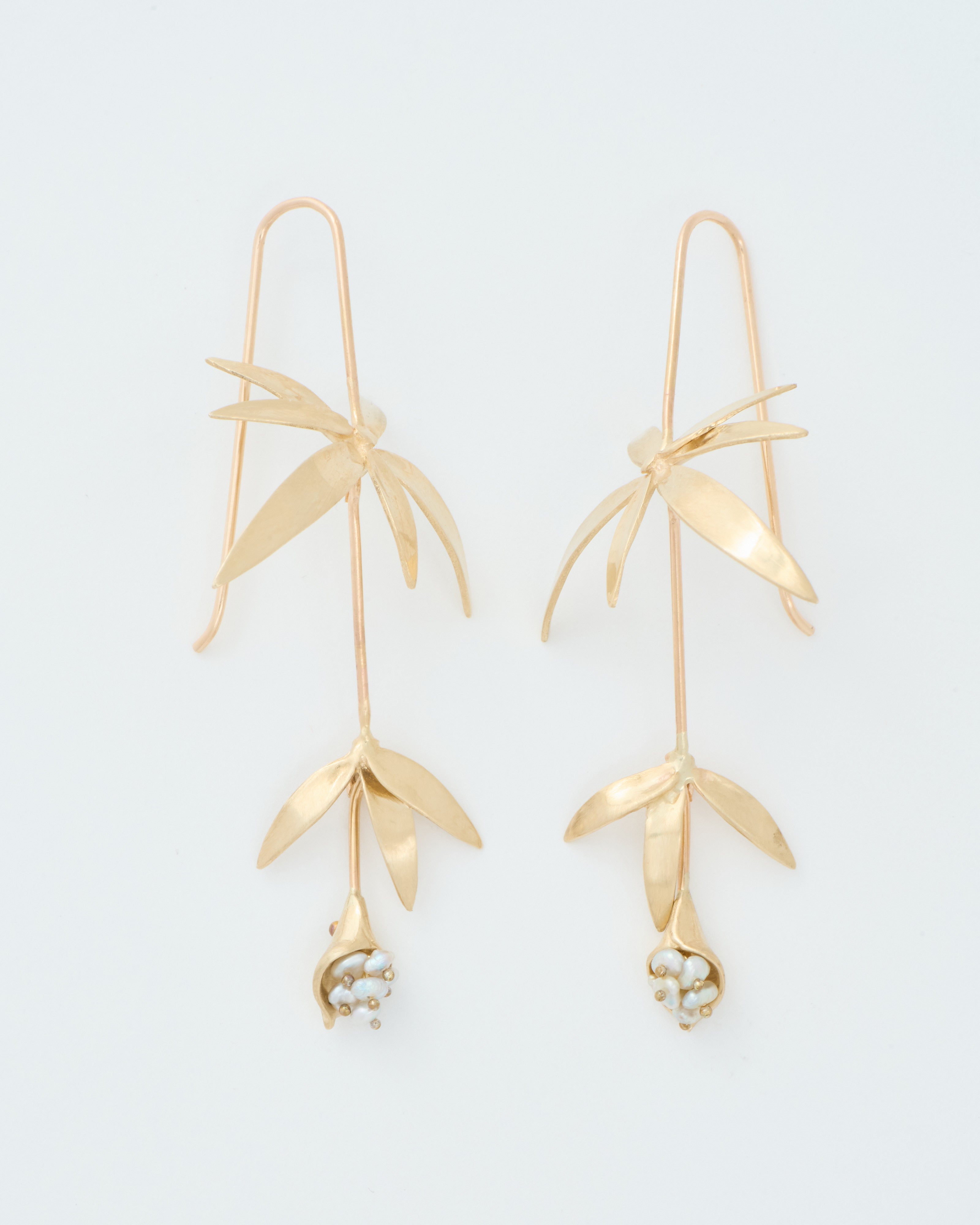 long wildflowers w/ keshi pearls earrings