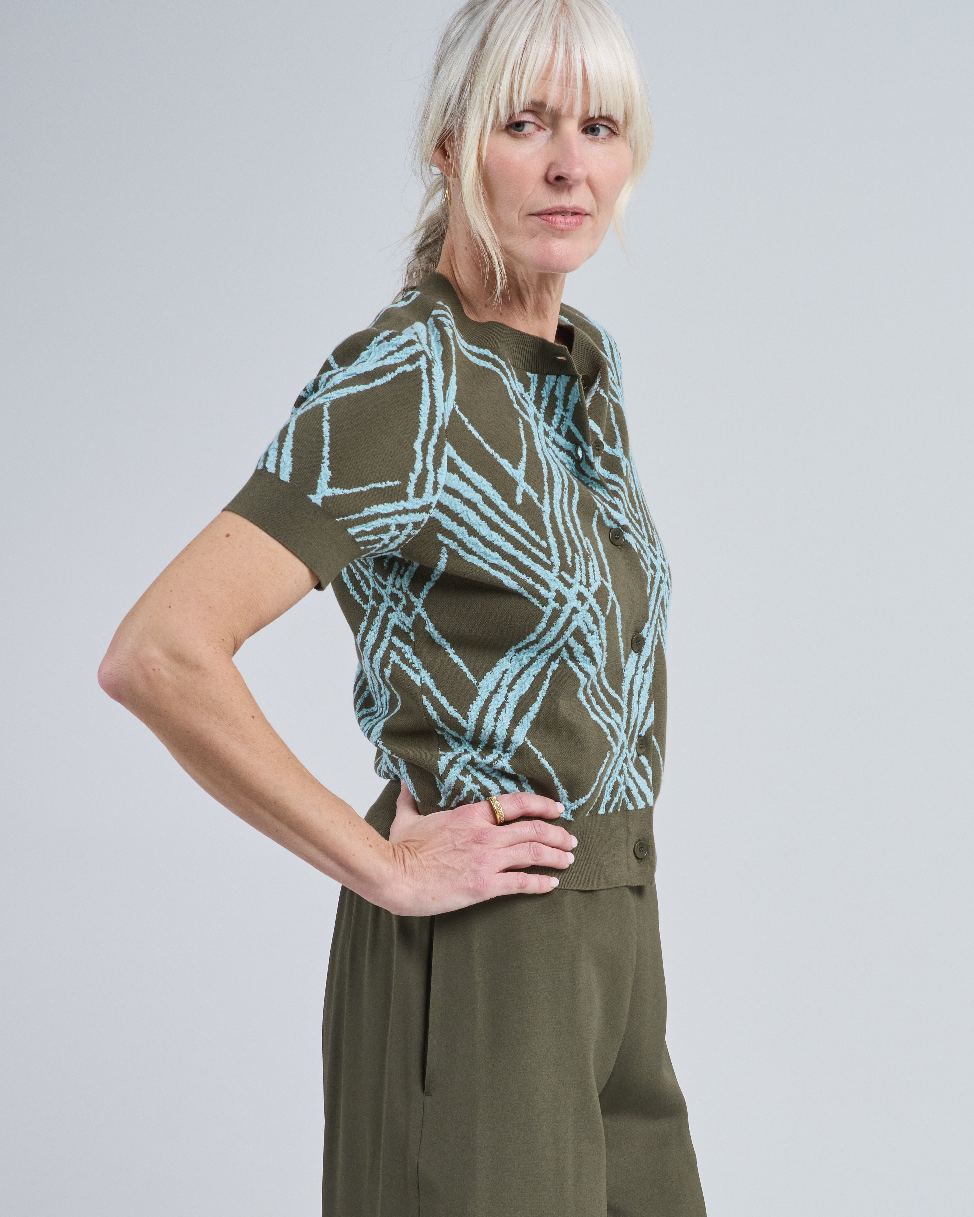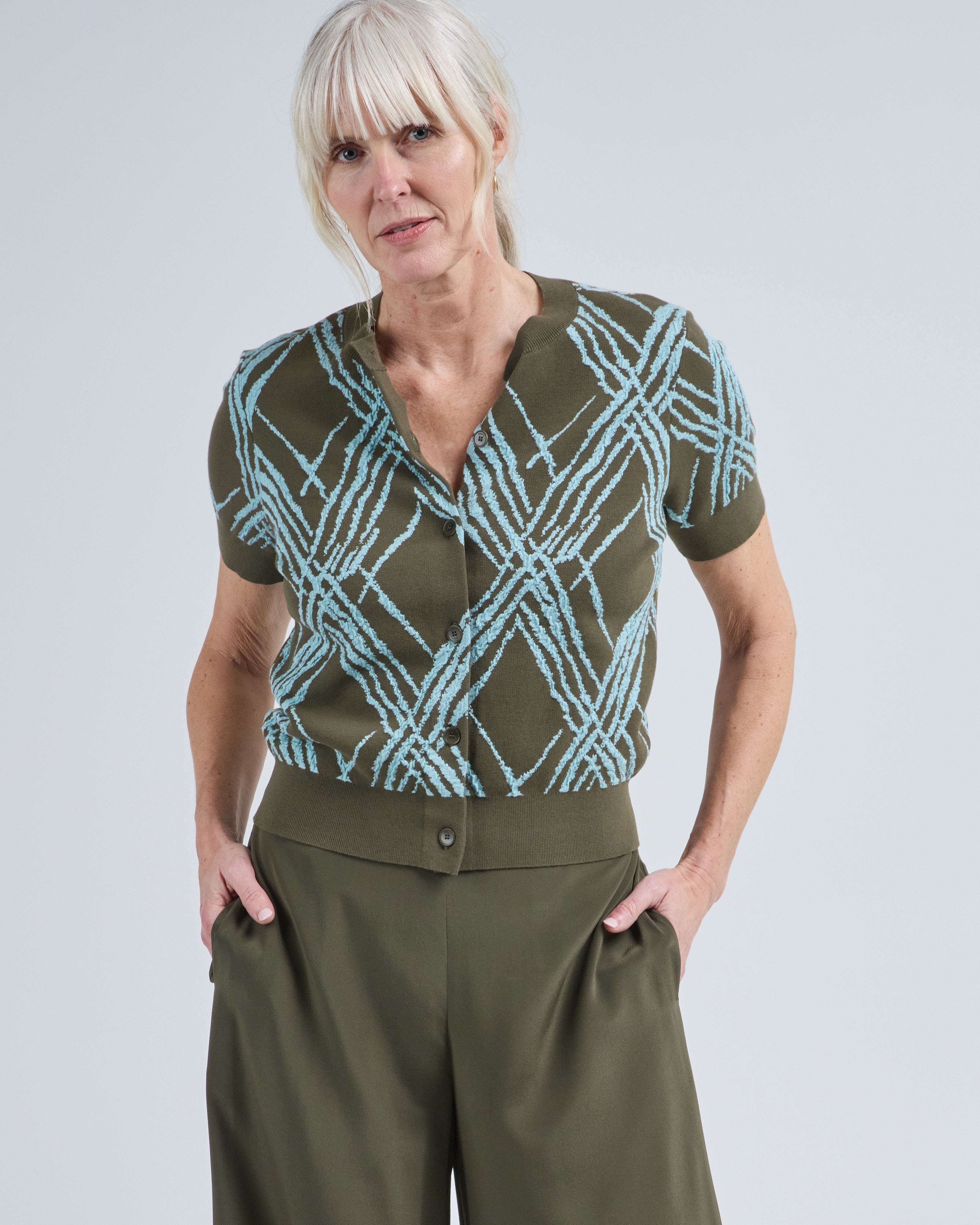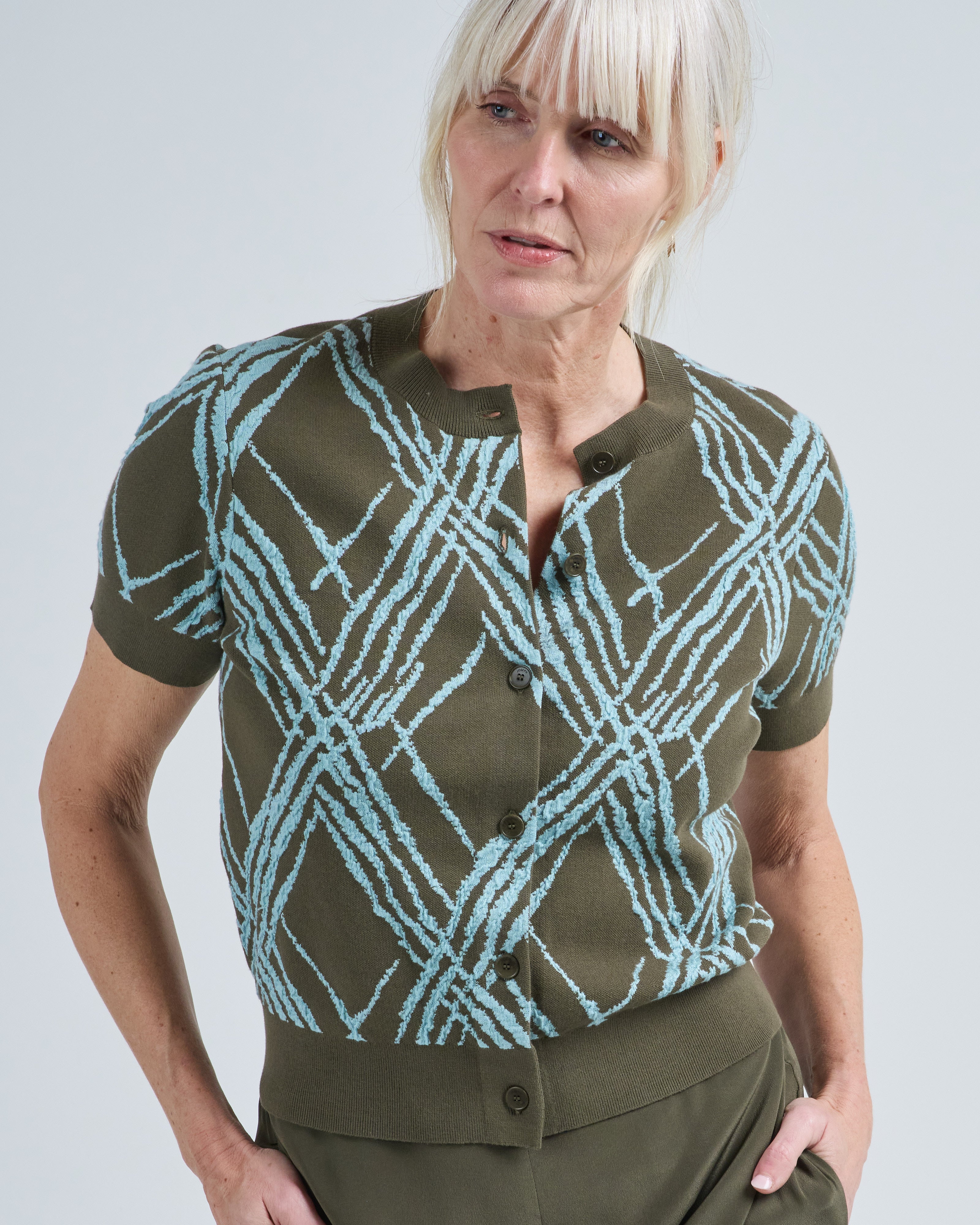 ain check knit cardigan