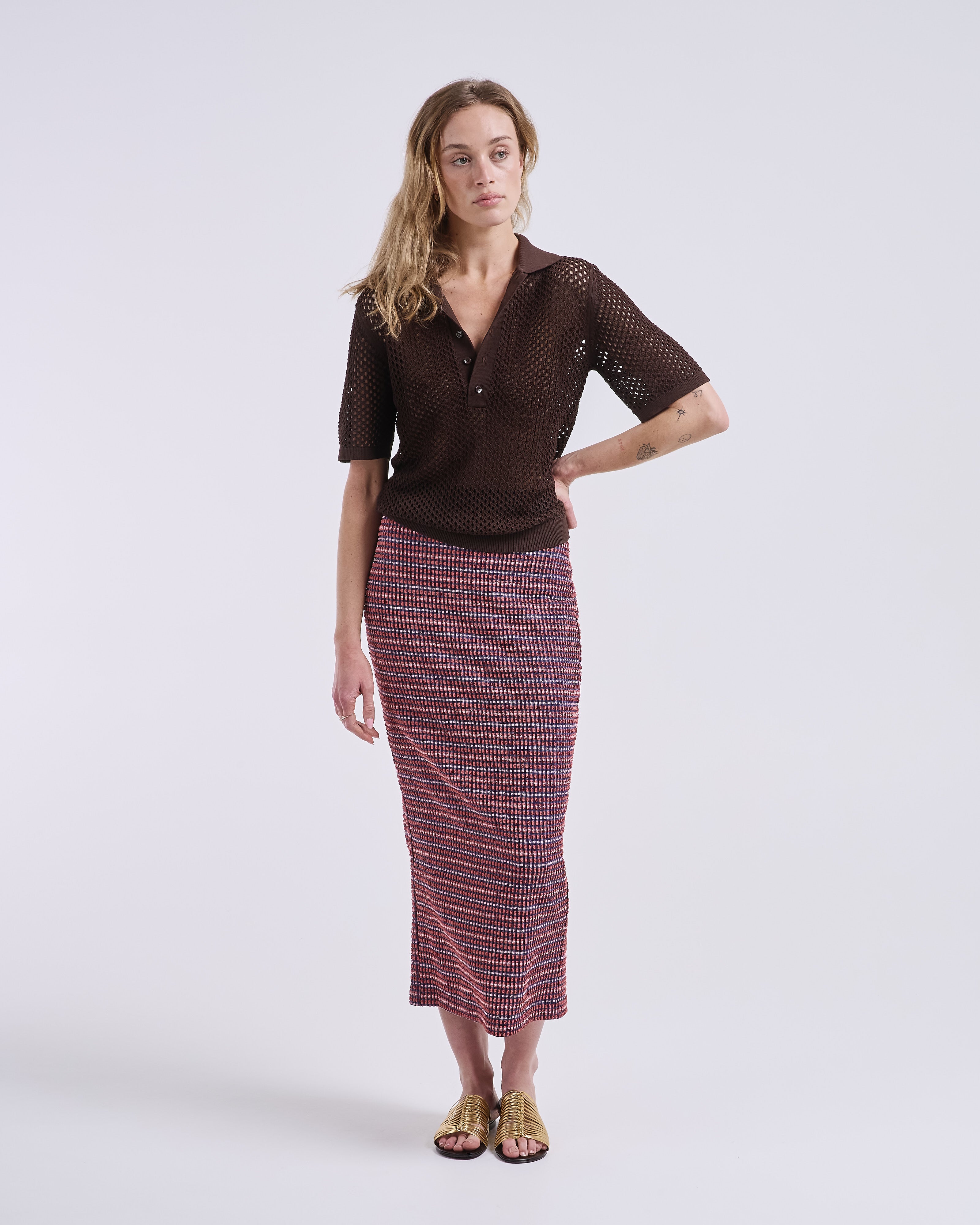 - olivia is 6'0” and wears a size 4. she is wearing the size small in this skirt.