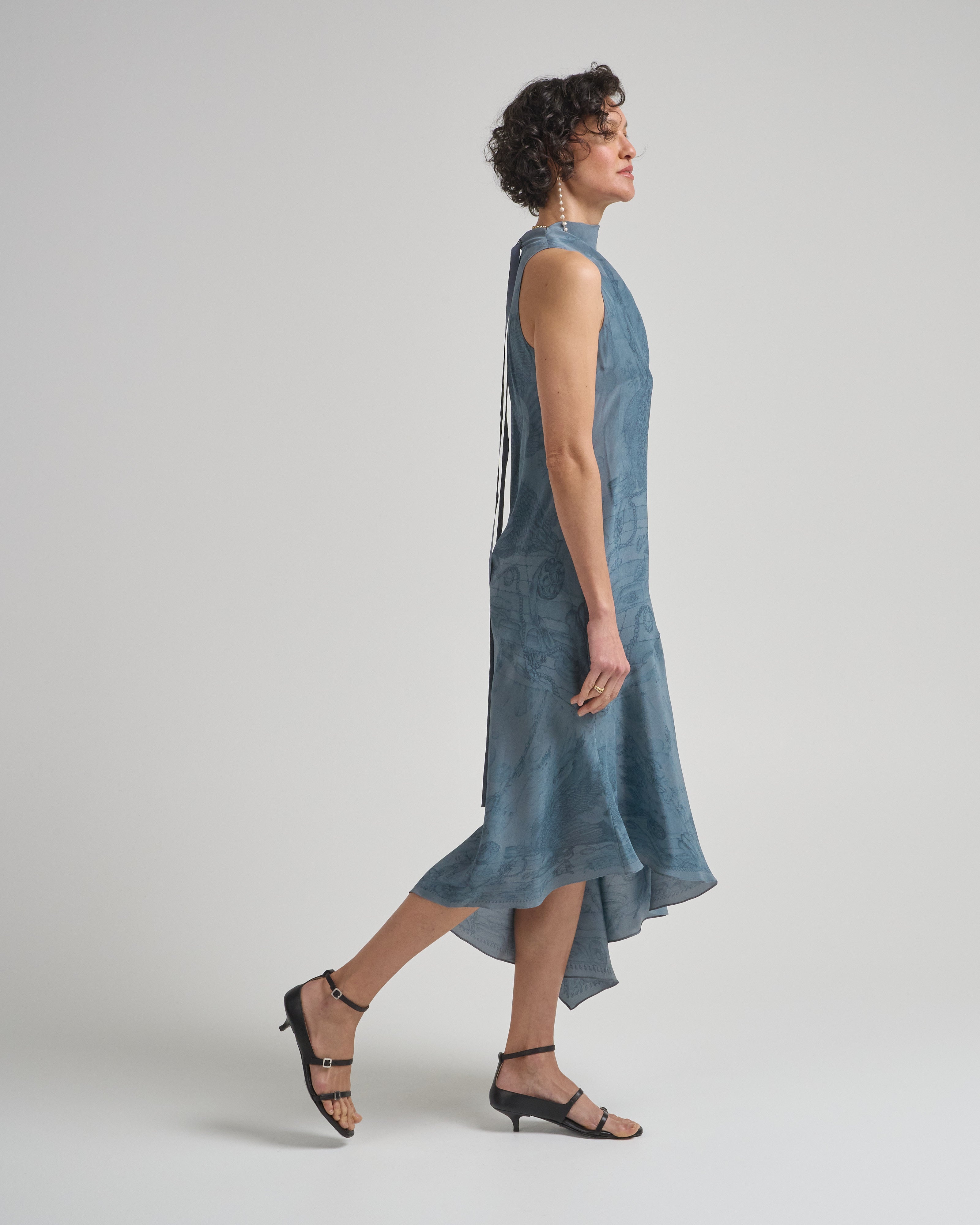 - high cowl neckline with back grosgrain ribbons