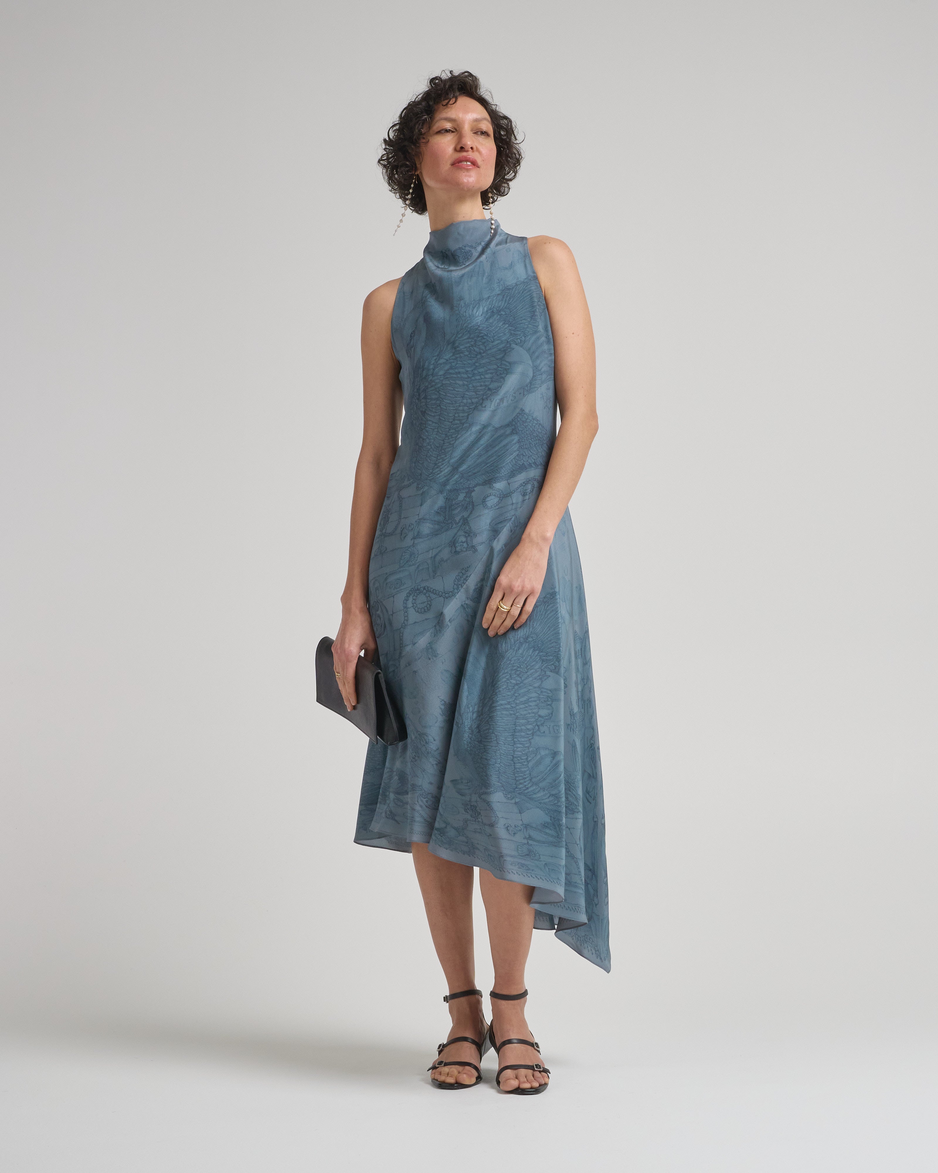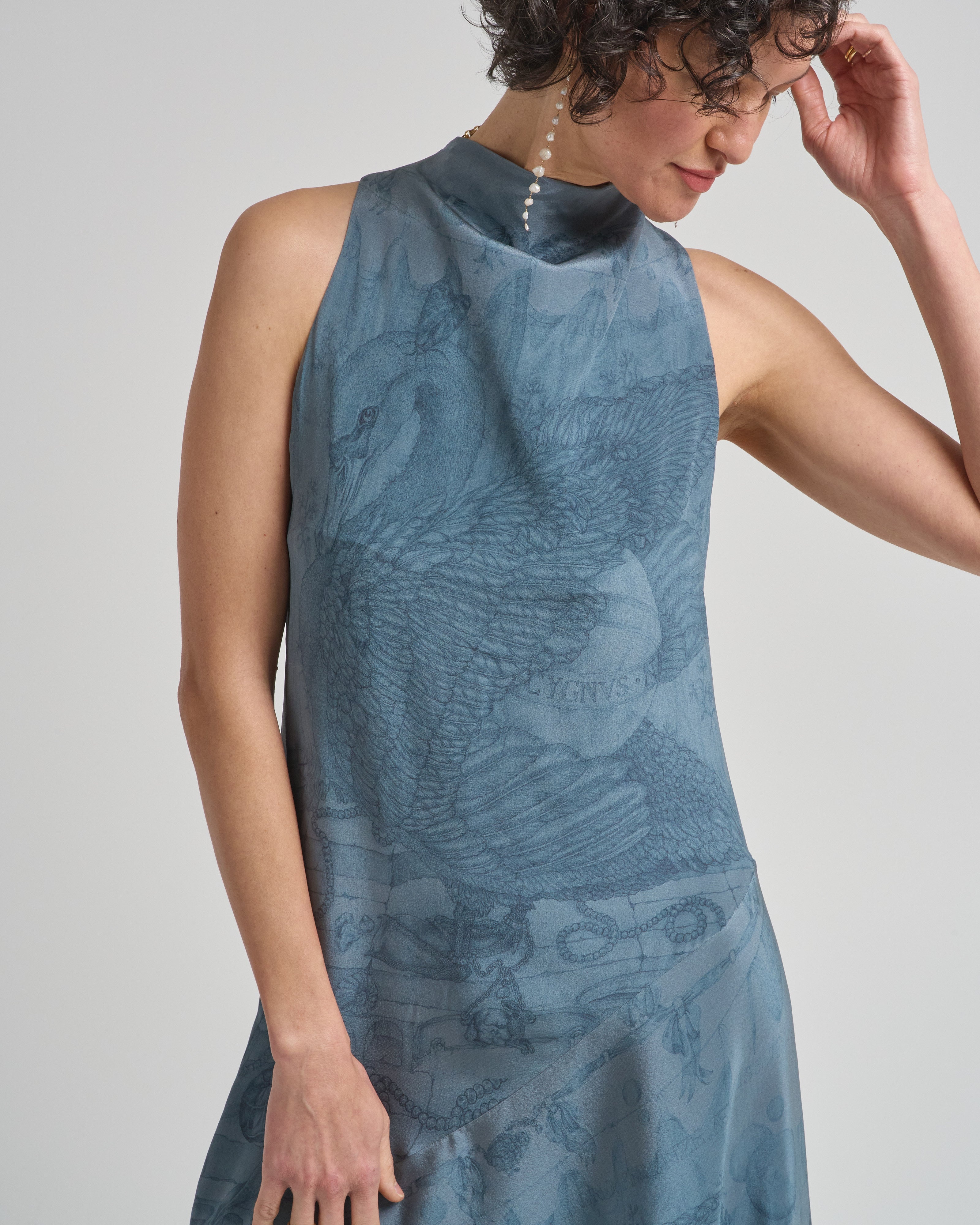 - blue pencil illustrated swan sleeveless dress