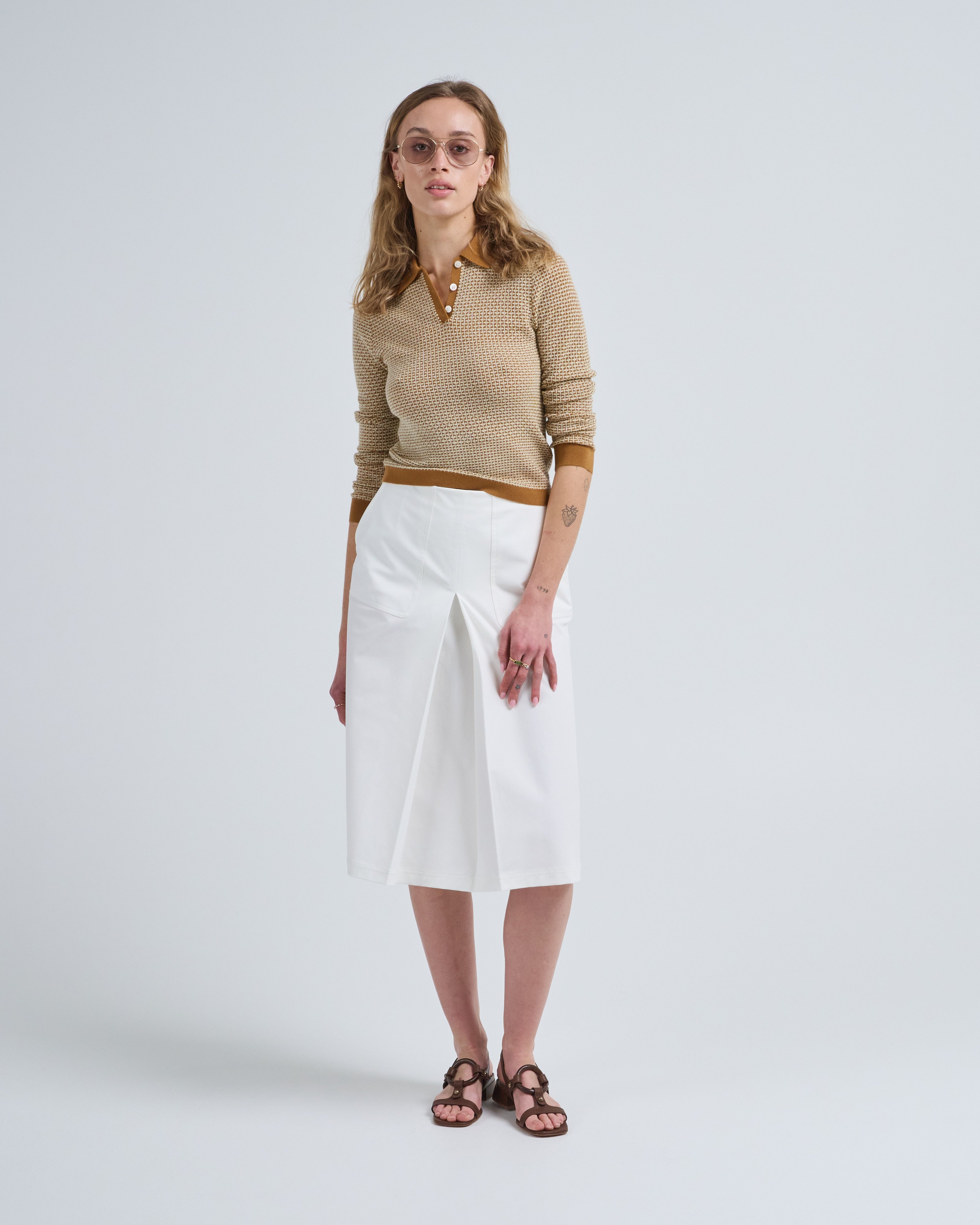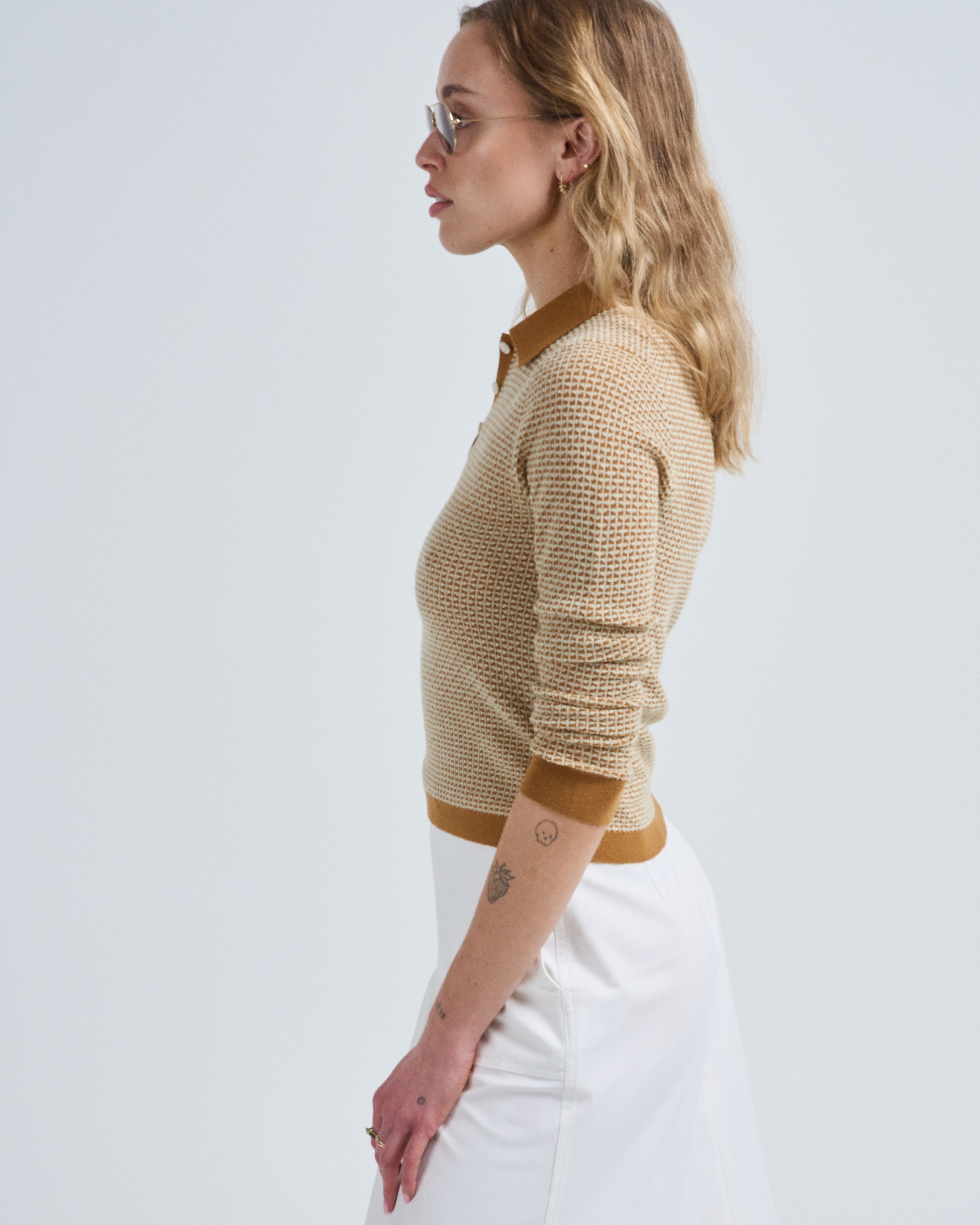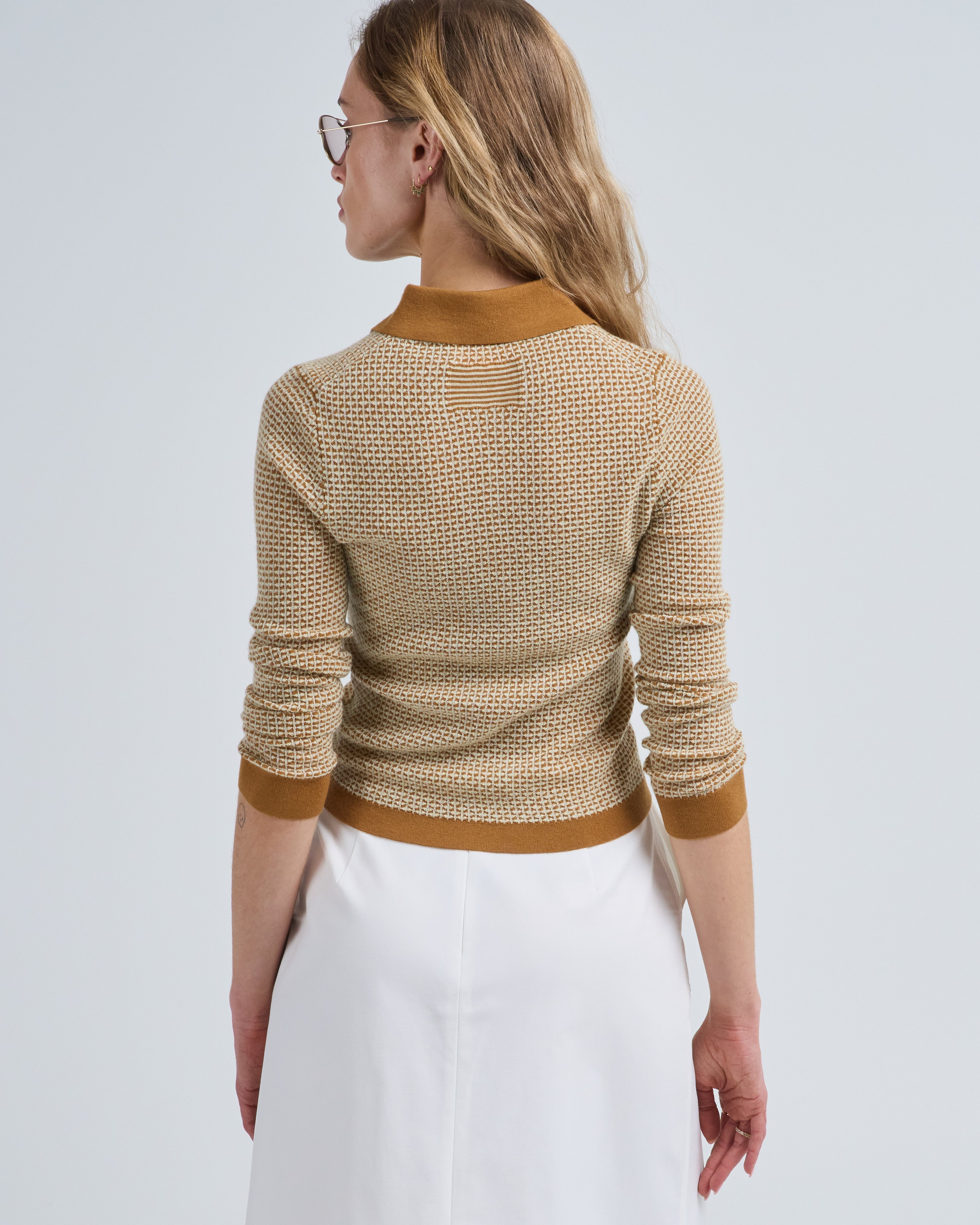 - brown long sleeve polo sweater