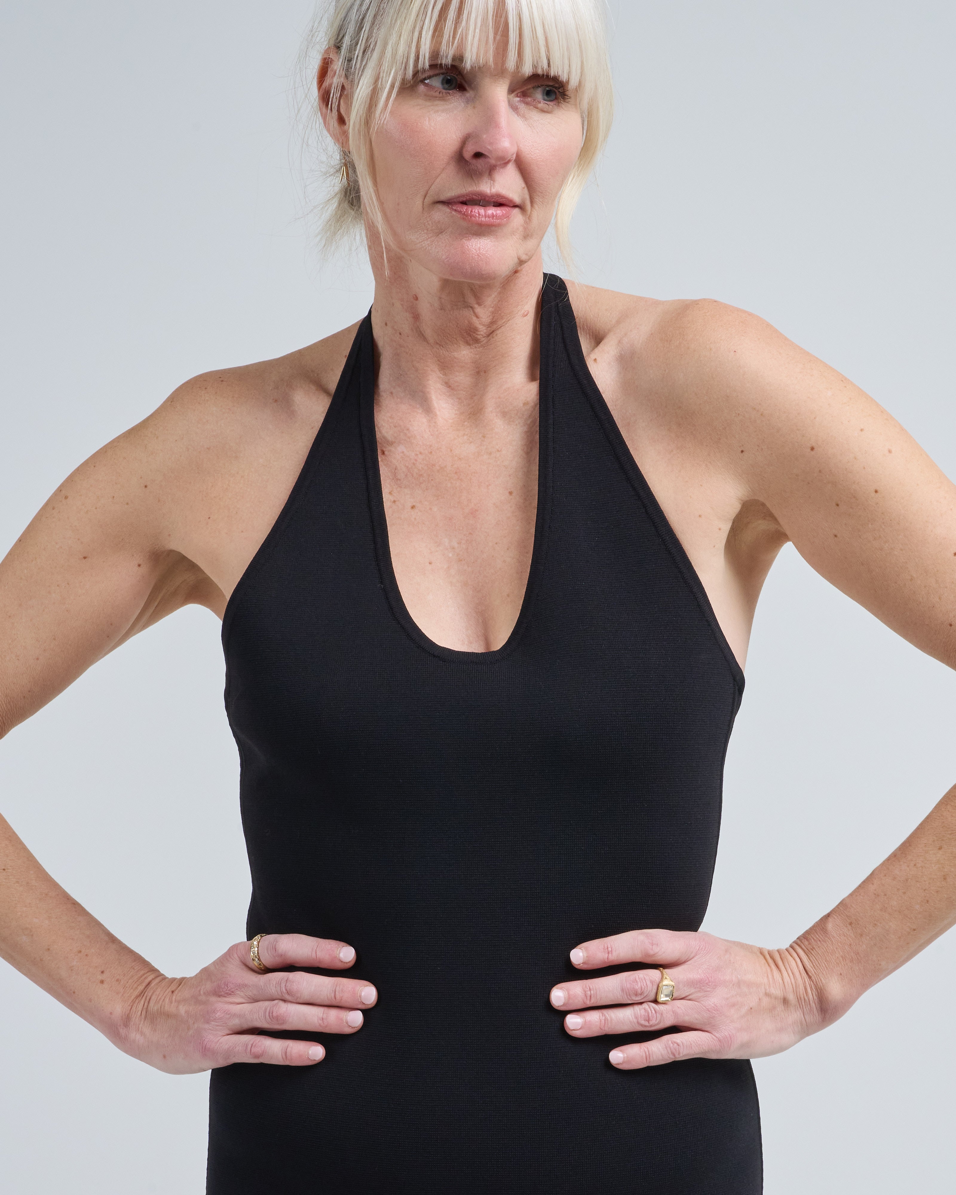 - halter, u-shaped neckline