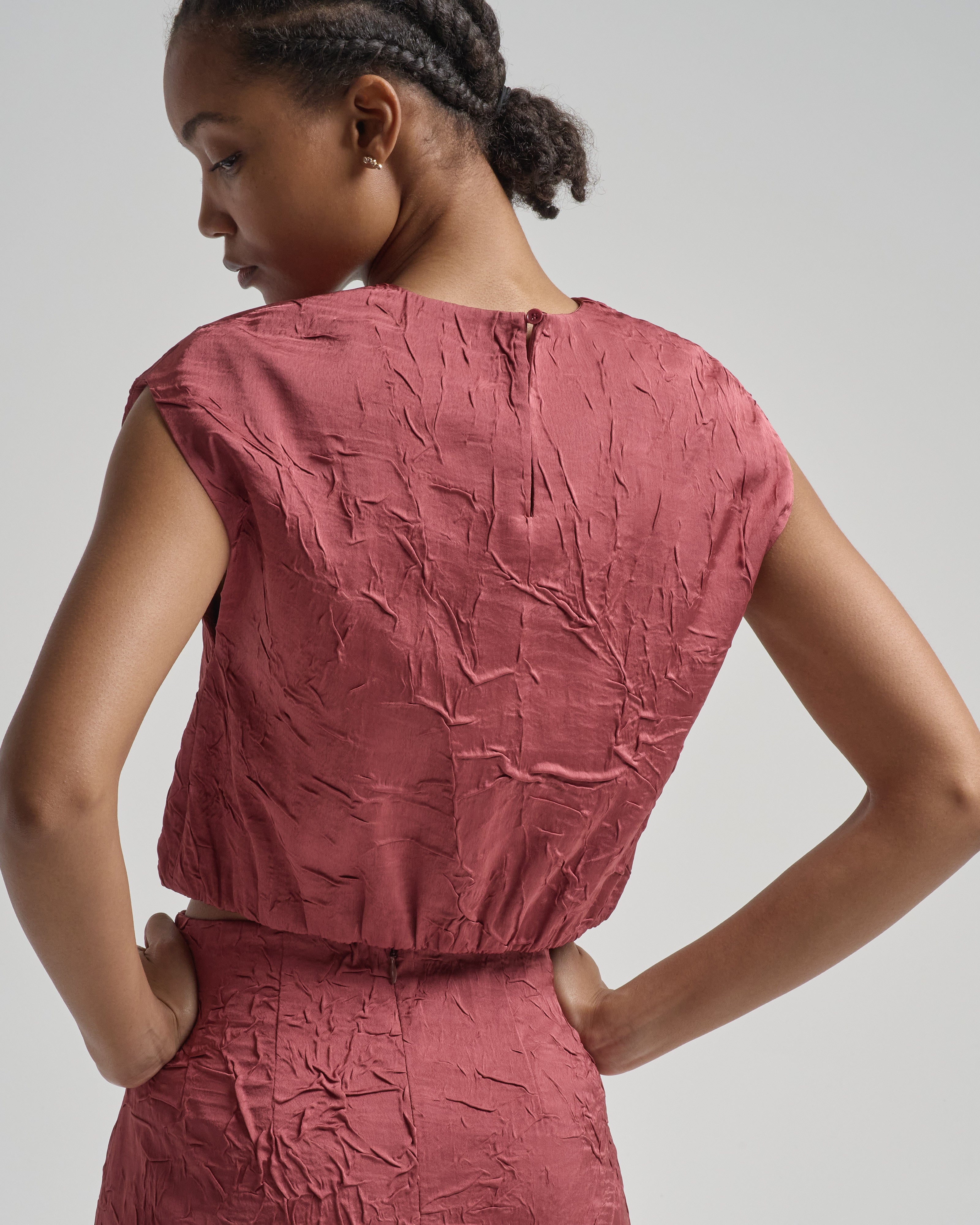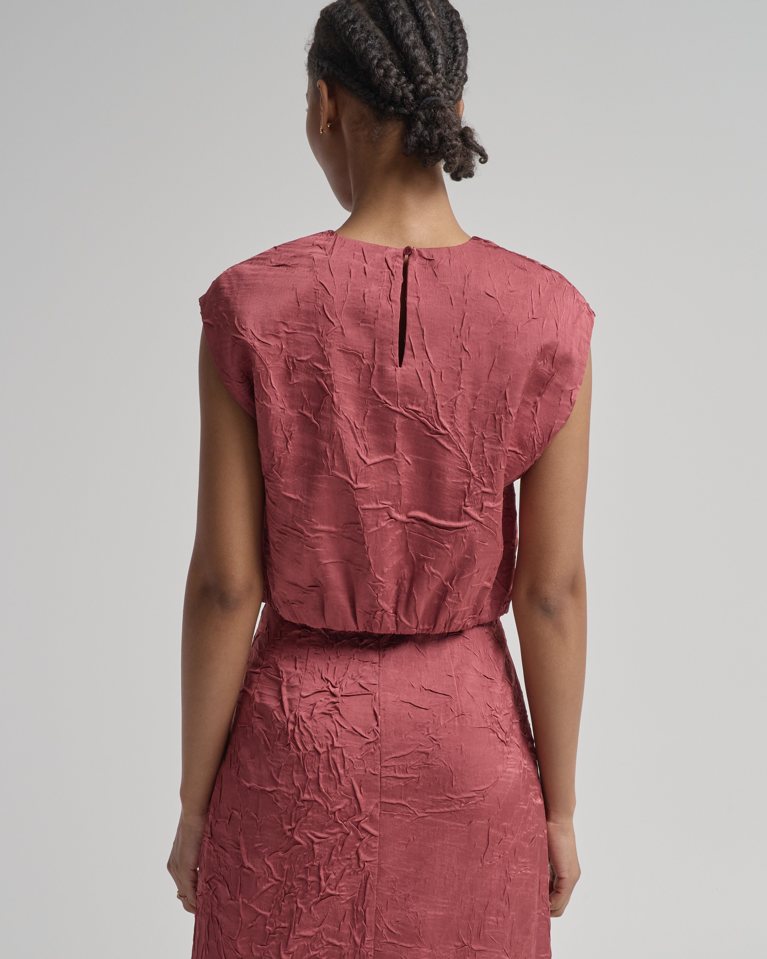 - red sleeveless top