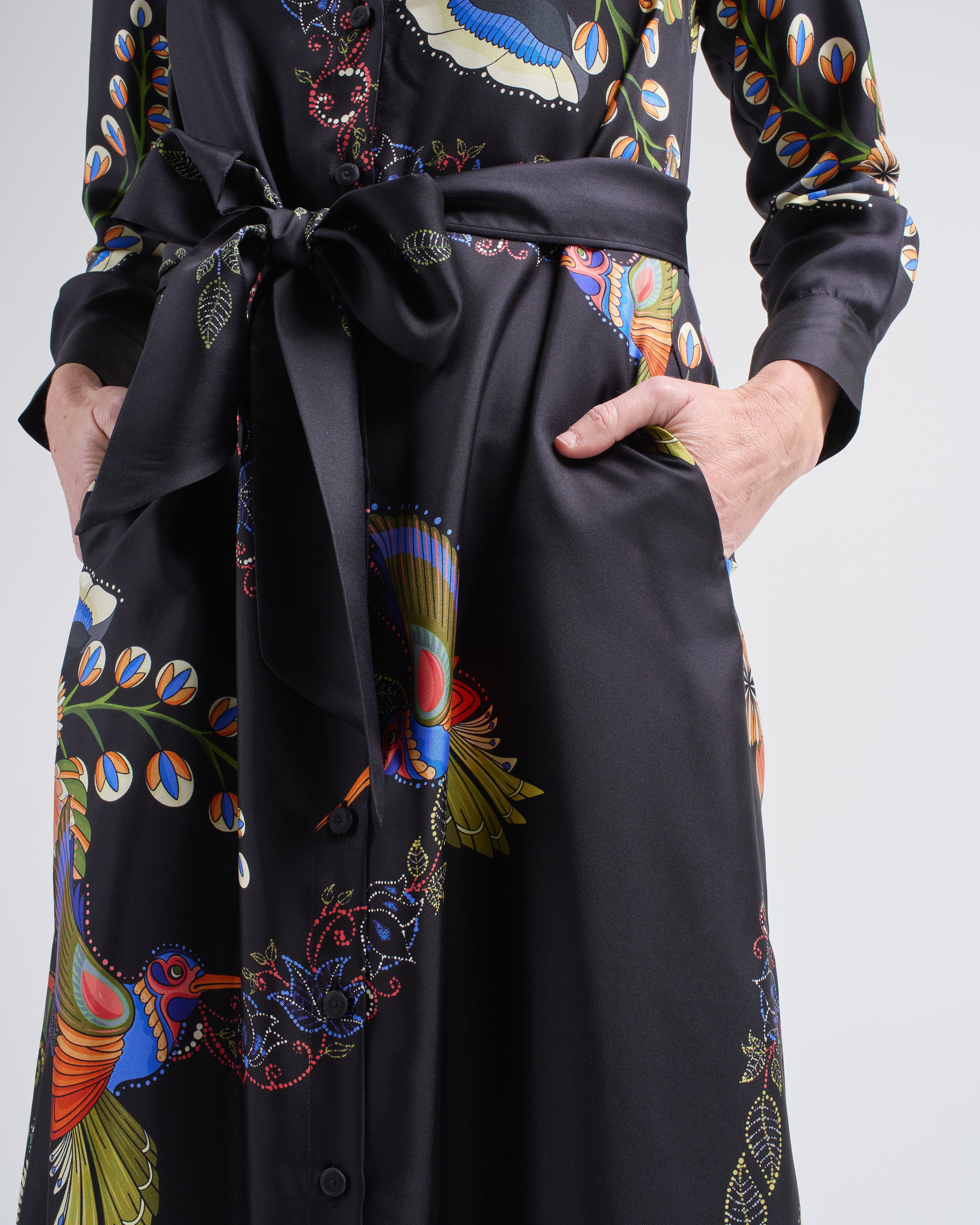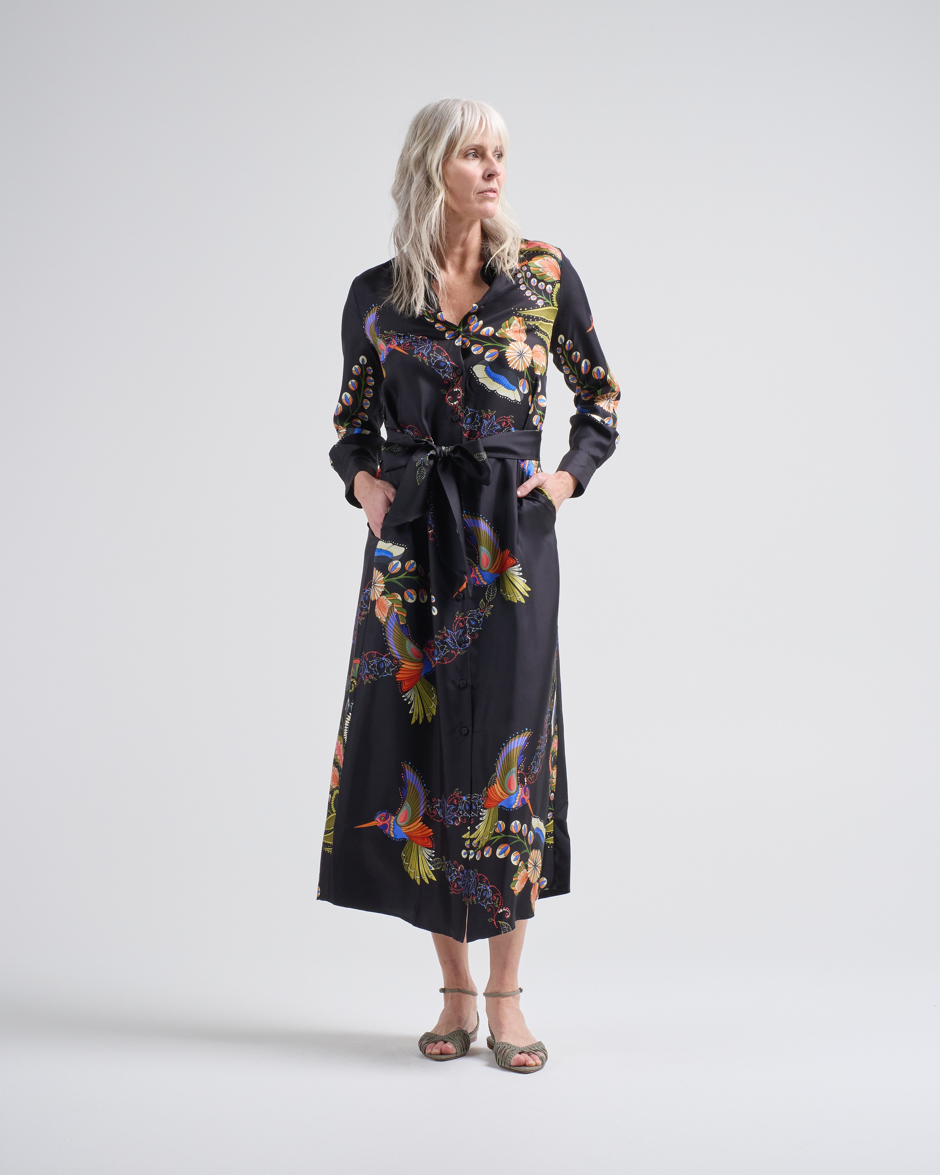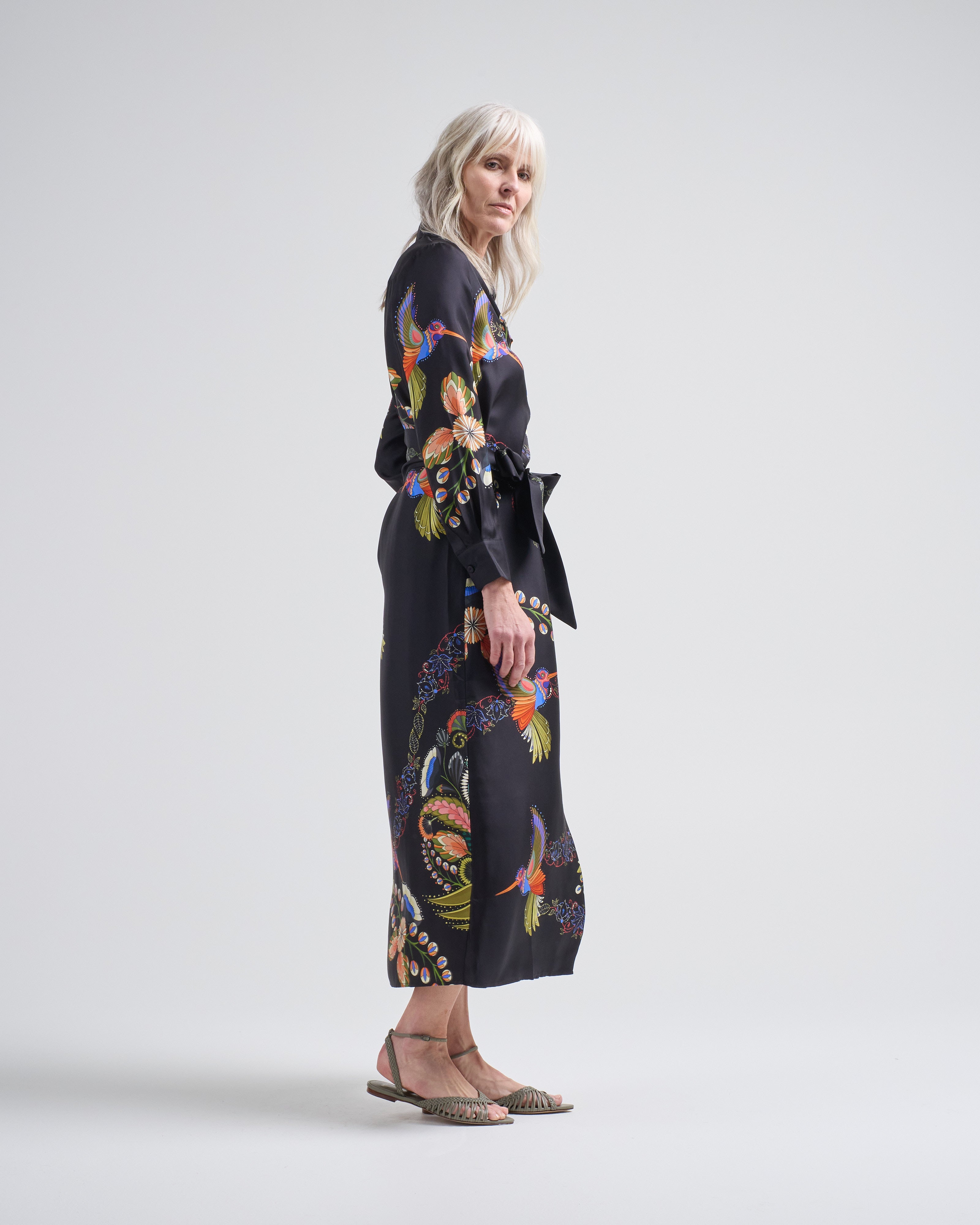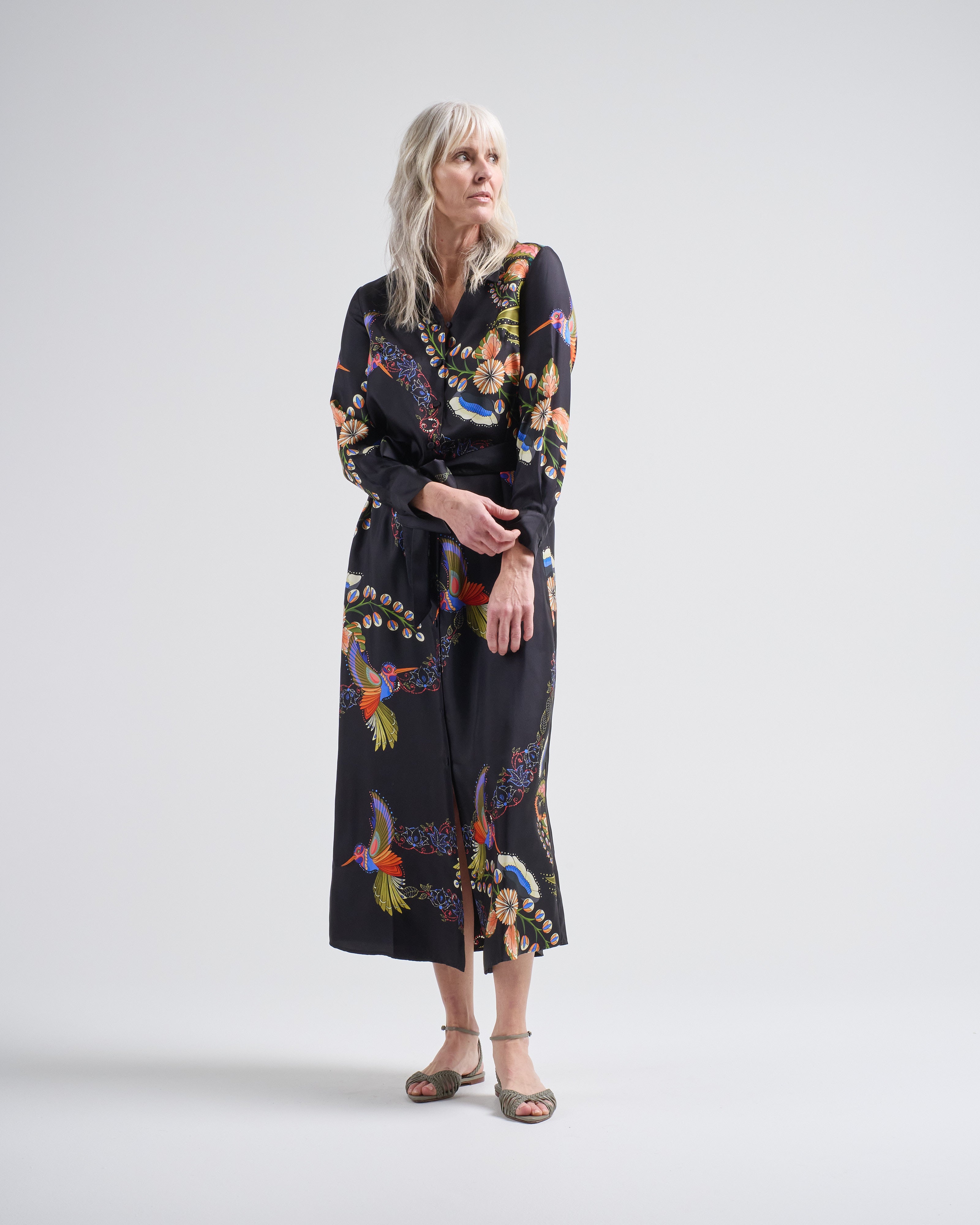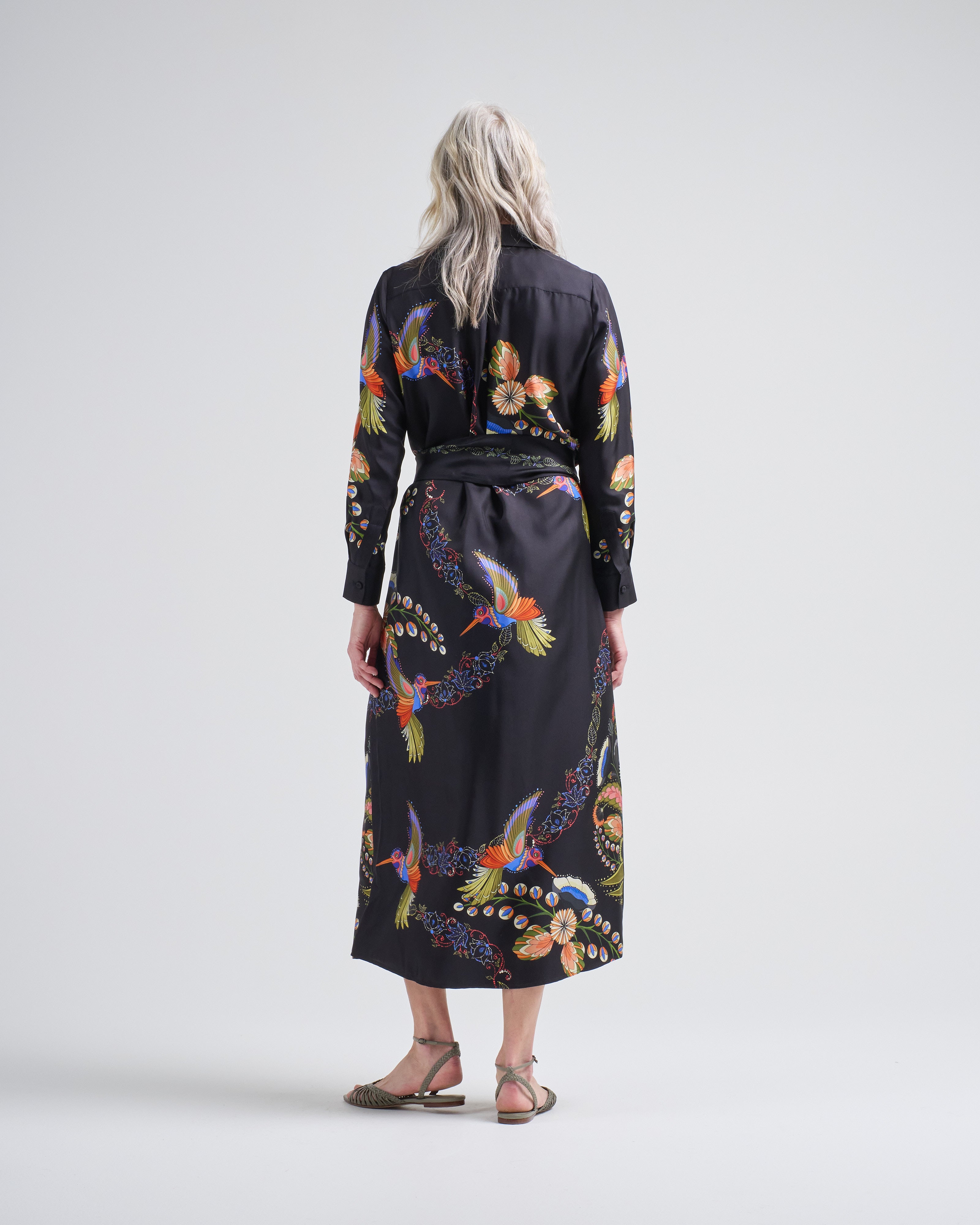 aloe silk long dress hummingbirds