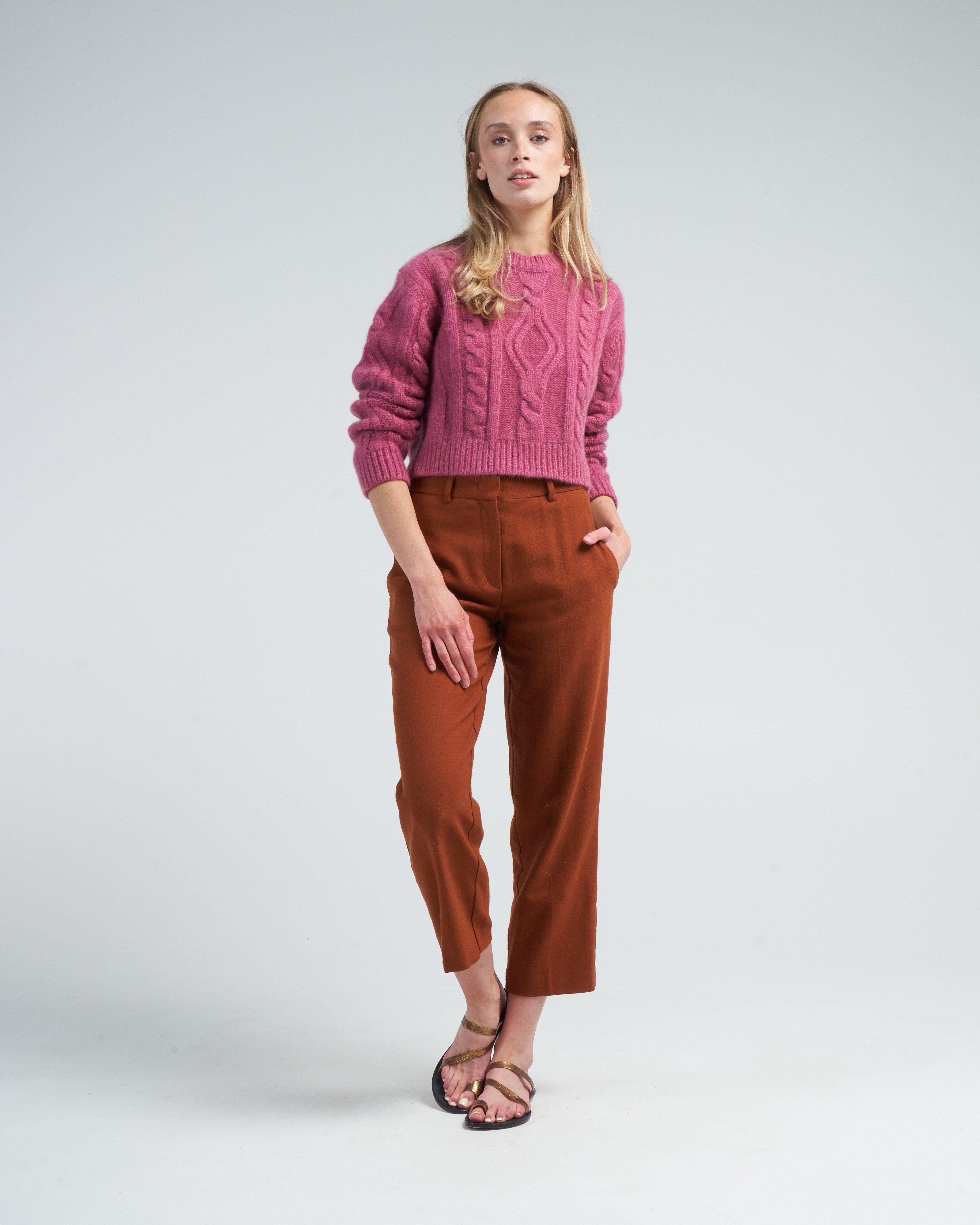 cable knit cropped crew - plum